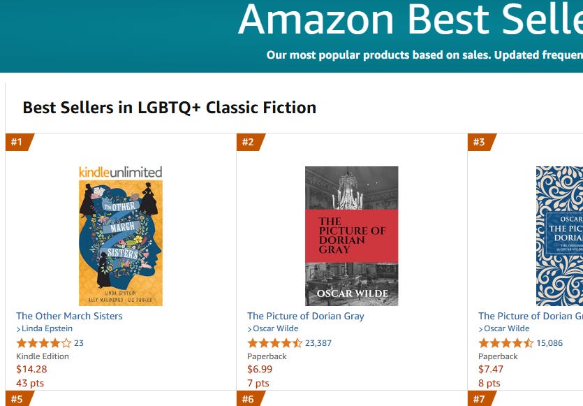 And further congratulations to Linda Epstein and co-authors Ally Malinenko and Liz Parker for The Other March Sisters hitting #1 on the Amazon Best Sellers/LGBTQ+ Classic Fiction list on the first day of publication last week!
