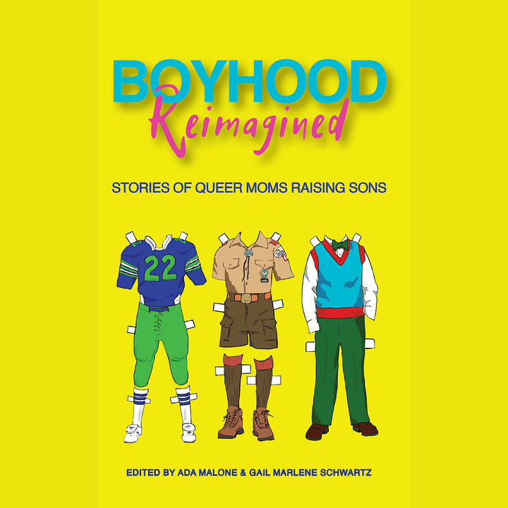 Clockwise from top left - click titles for links »» D. C. Wilkinson’s Scents of Lavender: Queer Love Through the Ages In Verse; Gail Marlene Schwartz’s Boy Hood Reimagined: Stories of Queer Moms Raising Sons; Mr. Troy Ford’s Lamb: A novel in snapshots; Andrea Bartz’s The Last Ferry Out